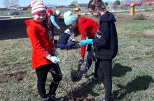 Ученики нашей школы приняли участие в Дне посадки леса. Посадили плодово-ягодные деревья.