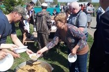 После торжественного митинга, посвященного 74-й годовщине Победы в ВОВ все были приглашены на полевую кухню.