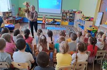 В гостях у воспитанников татарских групп актриса кукольного театра "Экият" Сабирова Ф.М. Фанзиля Минехурматуловна - заслуженный артист Республики Татарстан, артист-кукловод, награждена Почетной грамотой Министерства культуры. Она познакомила детей с куклами, продемонстрировала детям отрывки из театральных постановок, рассказала о видах театра, вместе с детьми проиграла песенки из сказок. Актриса и дети получили массу положительных эмоций.