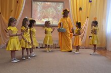 К воспитанникам младшей группы в гости приходила красавица Осень. Вмесне с ней они танцевали, музицировали на музыкальных инструментах, водили хоровод, пели песни и играли в веселые игры.