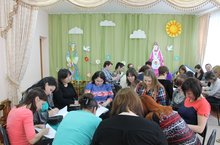 В рамках реализации ФГОС ДО на базе нашего детского сада прошёл семинар-практикум по теме: "Применение системно-деятельностного подхода в образовательной деятельности детей дошкольного возраста". В работе семинара приняли участие 27 педагогов района. Участники семинара смогли ознакомиться с основными требованиями системно-деятельностного подхода в образовательной деятельности и увидеть применение данного метода в открытых занятиях детей средней (татарской) и подготовительной к школе группы. Также участники семинара приняли участие в деловой игре и тренинге по применению здоровьесберегающих технологий в ДОУ.