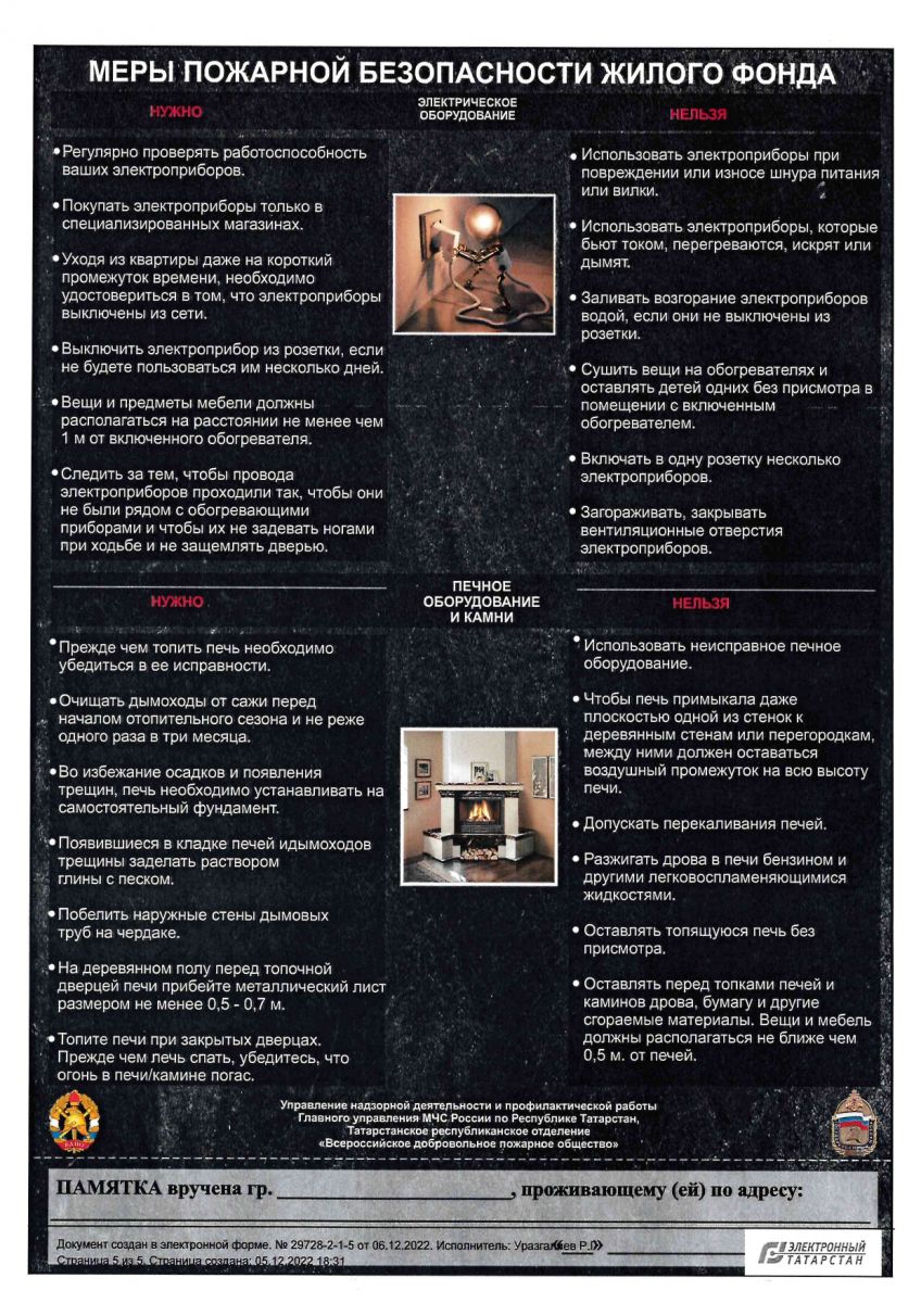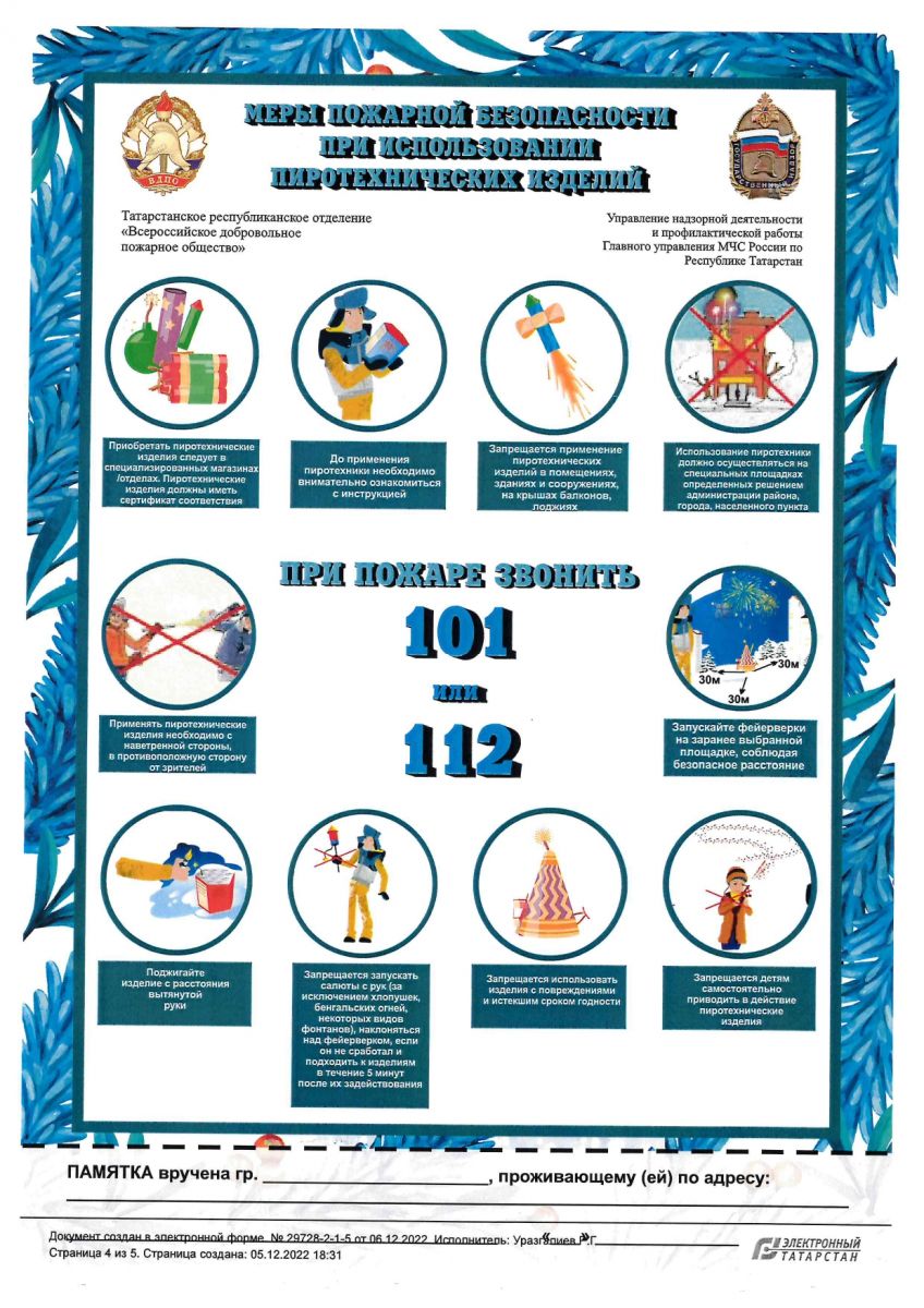 Опубликовано: 12.12.2022Главное управление МЧС России по Республике Татарстан сообщает, что ежегодно в Республике в период проведения новогодних праздничных мероприятий возрастает вероятность возникновения пожаров из-за нарушений требований пожарной безопасности при эксплуатации электрооборудования и неосторожного обращения с огнем. Риск возникновения пожаров обусловлен тем, что используются несертифицированные электрические гирлянды, электроприборы. Также возрастает риск возникновения пожаров, связанных с нарушением требований пожарной безопасности при использовании пиротехнических изделий.