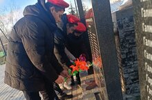 Юнармейцы торжественно возложили цветы к памятнику. Почтили память погибших минутной молчания.