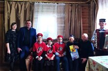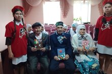 Юнармейцы совместно с работниками культуры поздравляют тружеников тыла с наступающим праздником Победы. Акция "Ветеран, мы рядом!". Буген яшьармиячелэребез мэдэният хезмэткэрлэре, авыл жирлеге башлыгы белэн берлектэ тыл ветераннарын Жину бэйрэме белэн котладылар.ветерану" и "Открытка Победы".