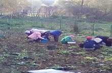 Укучылар, укытучылар бергәләп бакчабыздан көзге уңыш җыйдылар.Уборка урожая.