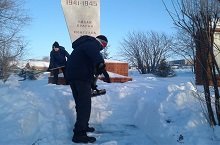 Юнармейцы сегодня очистили от снега территорию обелиска