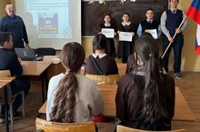 Учащиеся начальных классов играют в командную интеллектуально - познавательную игру "Крымское путешествие", посвященную Дню воссоединения Крыма с Россией. -
