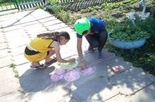 Инде бүген лагерьда соңгы көн эшлиләр. 18 көн сизелми дә үтеп китте. Укучыларыбыз эштән соң сабантуй оештырдылар. Мәктәп каршындагы плитәгә акбур белән матур итеп рәсемнәр ясадылар.