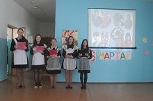 Учащиеся школы поздравили коллектив с международным женским праздником 8 марта. Актив школы приготовил презентацию, концерную программу.