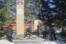 В рамках акции "Весенняя неделя добра" волонтеры школы провели уборку снега и льда памятника павшим героям в годы ВОВ села Усады.