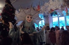На школьной елке выступили артисты кукольного театра "Әкият" города Казани. Фойе школы красочно украсили старшеклассники.