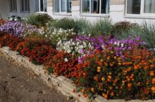 Центральный вход Усадской средней школы украшен цветниками. Во дворе начало октября, а клумбы превращаются в разноцветный ковёр, раскрашенный яркой палитрой необычных красок.