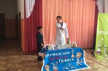 Дети с изумлением смотрели яркие, эффектные, интересные и познавательные эксперименты. Все опыты были объяснены на понятном языке в игровой форме. Ученикам показали, как наука может быть ИНТЕРЕСНОЙ. Каждый ребенок стал участником шоу, совместно с профессором Гринсом проводили те или иные эксперименты и опыты.