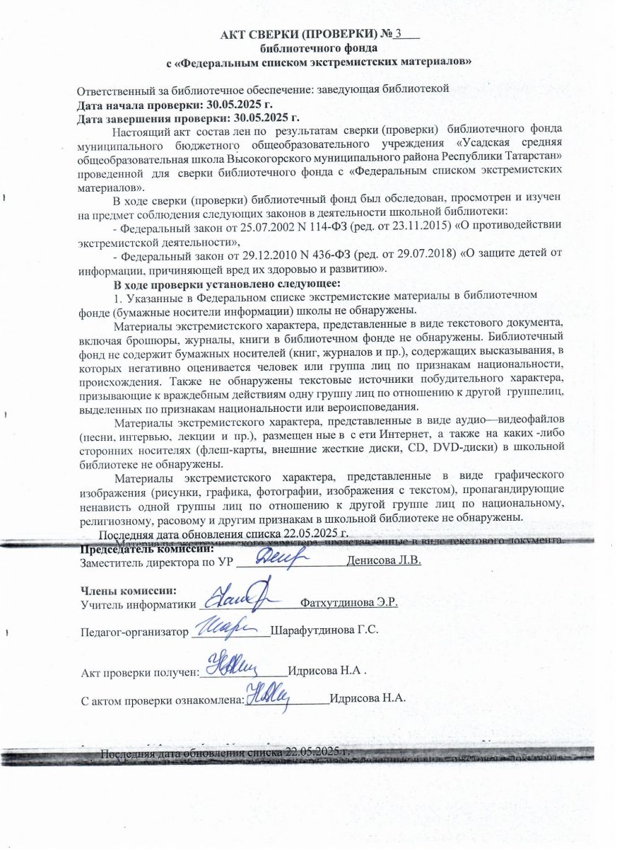 АКТ сверки библиотечного фонда с Федеральным списком экстремистских материалов 2025