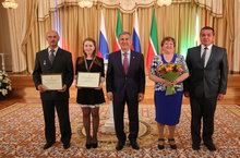 В этот же день в Казанском Кремле прошла торжественная церемония чествования победителей и призеров заключительного этапа всероссийских олимпиад школьников, а также их педагогов и родителей с участием Президента Татарстана Рустама Минниханова. «Стремление реализовать себя в той или иной области, созидать и делать научные открытия позволяет быть успешными и востребованными в обществе всегда и во все времена», — отметил Рустам Минниханов, приветствуя «будущую интеллектуальную элиту республики». В мероприятии участвовала и наша победительница – Тазиева Алия из Дубъязской СОШ, ее родители и педагог Зиганшин Радик Равилович. Им были вручены сертификаты.