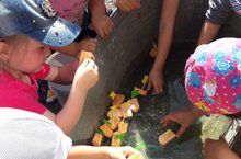 Иҗади эш атналыгын йомгаклап кечкенәләр төркеме балалары тәрбияче апалары ярдәме белән көймәләр ясадылар. Һәм шушы көймәләрне суда йөздерделәр. Бу балалар өчен бик күңелле шөгыль булудан тыш, сулыш гимнастикасы өчен дә бик файдалы булды.