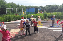 Кечкенәләр катнаш төркеме балалары тәрбияче апалары Альбина Альфред кызы белән саф һавада “Үз төсеңне тап” диеп аталган хәрәкәтле уен уйнап, төсләрне белүләре ныгытылды.