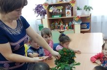 Икенче кечкенәләр төркеме балалары бакчадан күчереп алып кереп утырткан гөлләрне күзәттеләр.