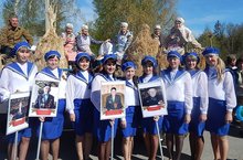 Балалар белән Бөек Җиңүнең 70 еллыгына багышланган митингта катнаштык.