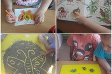 Дети первой младшей группы изучили насекомых. Слепили тараканов, нарисовали на песке бабочек.