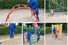 Икенче катнаш кечкенәләр төркеме балалары саф һавада физик тәрбия мәйданчыгындагы спорт җиһазларында шөгыльләнделәр.