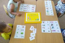 Үткән(өйрәнгән)материалны ныгыту максатыннан уртанчылар һәм зурлар катнаш төркем балалары белән дидактик уеннар уйнауны оештырдык. Дидактик уеннар балаларның сүзлек запасларын арттыра, программа материалын яхшырак үзләштерергә ярдәм итә,татар һәм рус теленең лексикасын,сөйләм материалын уен формасында үзләштерергә мөмкинлек бирә.