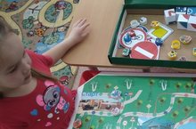 6 нчы апрель көнне зурлар һәм мәктәпкә әзерлек төркеме балалары белән юл йөрү һәм тормыш куркынычсызлыгы кагыйдәләрен кабатлап “Авылыбыз буенча сәяхәт” дигән өстәл уенын уйнадык. Уен ярдәмендә транспорт төрләрен, юл билгеләрен, авылыбызның күренекле урыннарын искә төшердек, 1 дән уңай якка санауны ныгыттык, юл билгеләренең кызыл, зәңгәр, сары төсләре нәрсә турында сөйләүләре турында сөйләштек.