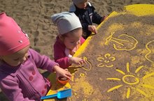 Бүген беренче кечкенәләр төркемендә ком белән төрле тәҗрибәләр уздырылды. Әлеге шөгыль вакытында нәниләр коры комга рәсем төшереп булуын, өрсәң,аның юкка чыгуын күреп сөенде. Көзнең матур көнендә ком белән уйнау бик күңелле һәм файдалы булды.