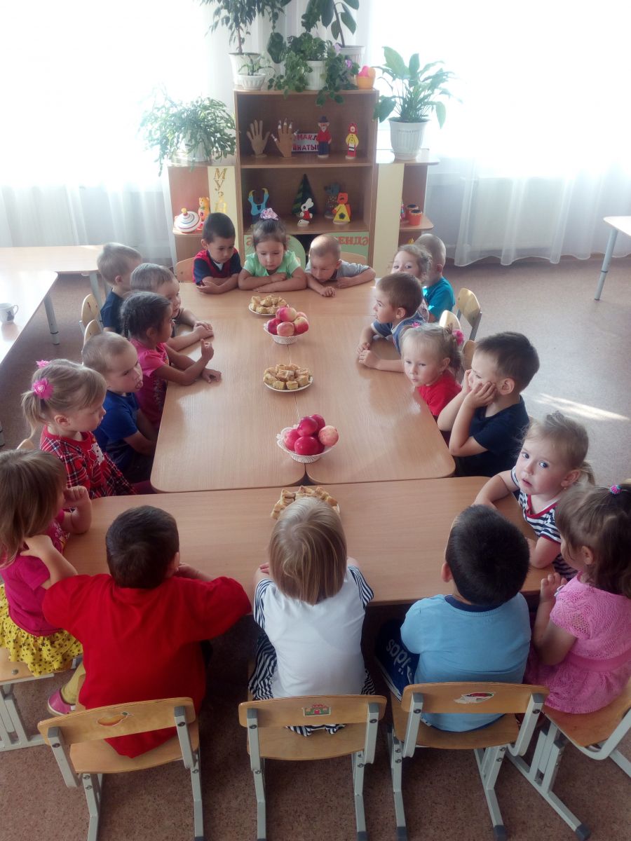 Балалар бакчасында мавыктыргыч “Алма бәйрәме” үтте. Балалар бу бәйрәмнең тарихы белән таныштылар. Алманың формасы, төсе, тәме буенча белемнәрен ныгыттылар. Көн ахырында балалар алма бәлеше һәм алмадан авыз иттеләр. / В детском саду прошло увлекательное занятие в честь праздника “Яблочный Спас”. Дети познакомились с историей праздника. Закрепили свои знания о яблоке: цвет, по форма, вкус. В конце дня детей угостили яблочным пирогом и яблоками.