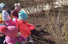 Кечкенәләр төркеме балалары куакларның борын төрткән бөреләрен күзәтә.