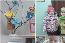 С помощью воспитателя украсили группу к возвращению птиц с тёплых краёв. Играя настольную игру «Составь птицу» изучили части тела птиц. Играли в компьютерную игру «Где какая птица живёт». С помощью родителей сделали скворечник и повесили в парке.