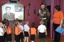 20 февраля в младшей разновозрастной группе детского сада “Йолдыз” прошёл физкультурный досуг, посвящённый к празднику 23 февраля – день Защитника Отечества. В мероприятие пришёл гость , отец Мифтахова Азамата, Руслан Галиаскарович. Он служил в ракетных войсках нашей Армии. Он рассказал детям как служил, какой режим дня у солдата и какими качествами должен обладать солдат. В свою очередь дети проверили свои способности в разных играх. И за это Руслан Галиаскарович наградил их медалями. -