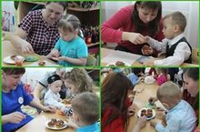 Гость праздника Карлсон принёс очень весёлые игры, в которых принимали участие не только дети, но и мамы и бабушки. В свою очередь дети подарили мамам свои песни, танцы и подарки которых сделали своими руками. И воспитатели подготовили мамам, бабушкам свой оригинальный подарок – спектакль по рассказу Ф.Яруллина «Пятно на солнышке». Которое до слёз растрогало наших мамочек, бабушек. А самое интересное и запоминающееся для детей было чаепитие, где они вместе с мамами и бабушками украшали разноцветными посыпками кексы, которых испекли сами мамочки.