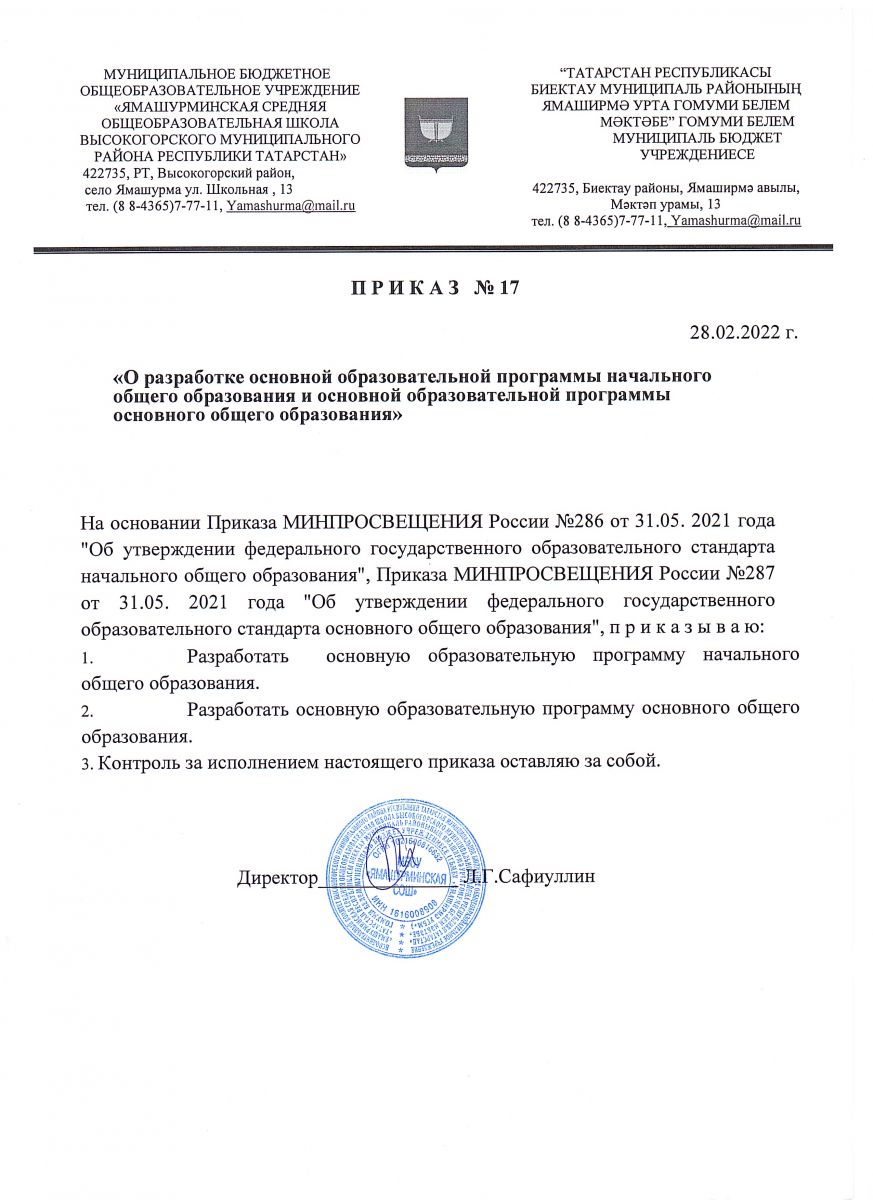 МБОУ "Ямашурминская средняя общеобразовательная школа имени И.К. Хайруллина Высокогорского муниципального района Республики Татарстан"