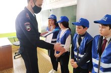 18 марта, начальник отделения ГИБДД МО МВД России «Верхнеуслонский» Альберт Бурганов и старший инспектор по делам несовершеннолетних МВД России «Верхнеуслонский» Аида Колезнева, 18 нче март көнне, Россия Эчке эшләр министрлыгының ЮХИДИ бүлекчәсе начальнигы Альберт Борһанов һәм Россия эчке эшләр министрлыгының балигъ булмаганнар белән эшләү буенча өлкән инспекторы Аида Колезнева