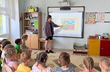 Сегодня музыкальный руководитель МБДОУ " Верхнеуслонский детский сад " Берёзка" Ландыш Хафизова для воспитанников провела развлечение " Летом не скучам! " Воспитанники отлично провели время на свежем воздухе, отгадывали загадки, весело пели и танцевали.