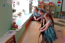 Сегодня в МБДОУ «Верхнеуслонский детский сад «Березка», в старшей «А «группе, дети вместе с воспитателем были заняты хозяйственно-бытовым трудом «Протираем от пыли полки для игр и игрушек».