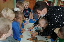 Штырова Ольга рассказала детям о народно-прикладном искусстве дымковской росписи.