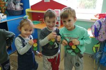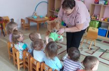Сегодня в МБДОУ «Верхнеуслонский детский сад «Берёзка» к ребятам младшей группы «Колобок» пришёл мишка. Он познакомился с детьми и спросил у них куда он пришёл. Ребята с удовольствием рассказали про детский сад. Воспитатель Екатерина Зеленцова предложила слепить для лесного гостя печенье. Малыши с удовольствие и особым интересом лепили печенье. Процесс лепки шел увлекательно и интересно. Раскатывали комочки пластилина круговыми движениями ладоней и сплющивая между ладонями.
