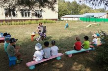 В летний период в МБДОУ «Верхнеуслонский детский сад «Березка» сохраняются музыкальные занятия, проводятся они как в музыкальном зале, так и на свежем воздухе.