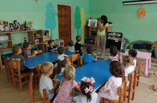 Сегодня в средней группе МБДОУ «Верхнеуслонский детский сад «Березка» прошёл артпраздник "Яркое лето!". Воспитатель Елена Сакина провела с детьми беседу о лете, о его красках и красоте. Затем ребята рисовали на длинном листе ватмана свои эмоции и впечатления о лете, превратив их в цветы, бабочек, солнышко и многое другое. Коллективное творчество очень понравилось детям, они общались друг с другом, интересуясь кто что рисует.
