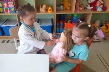 Сегодня в МБДОУ «Верхнеуслонский детский сад «Берёзка» воспитатель младшей группы Екатерина Зеленцова познакомила детей с работой врача. Провела игру «Что нужно доктору?». Екатерина Александровна предложила поиграть в сюжетно-ролевую игру «Больница». В игре дети выполняли роль взрослых. В данном случае дети выполняли роль доктора и пациентов, которые рассказывали врачу о том, что их беспокоит ,а также помогли больному мишке.