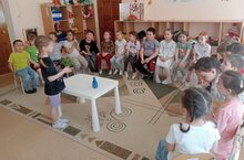 Детям была показана презентация " Лес и его обитатели" и проведена беседа о бережном отношении к лесу. Потом ребята вышли на улицу и там познакомились с оборудованием для тушения лесных пожаров . Дети с большим интересом слушали рассказ лесничего и с удовольствием примеряли на себя оборудование . После интересной беседы ребята вместе с сотрудниками посадили сосны на участке детского сада. Встреча была очень интересной, поучительной и познавательной. -