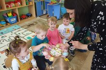 Пасха — самый светлый и добрый православный праздник. Его с нетерпением ждут и взрослые, и дети. Пасха празднуется по-особенному торжественно. Народные праздники знакомят детей с существующими традициями и обычаями русского народа. Мы, взрослые, должны с раннего возраста знакомить детей с историей нашей Родины, с богатством культурных традиций. Не остался незамеченным этот праздник и в нашем детском саду. В преддверии праздника в 1 младшей группе прошла пасхальная день. Дети раскрашивали бумажные яйца, делали аппликации, слушали песни о весне. Дети играли в народные игры: катали яйца (у кого дальше прокатится яйцо). Вся работа, проведенная с воспитанниками, способствует возрождению православных традиций, формирует у детей первичные представления о духовном наследии православного народа, уважение к православным праздникам. С праздником!