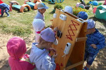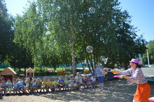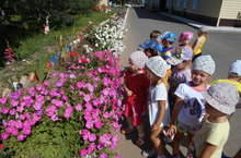 Сегодня воспитатель Алла Галеева с детьми второй младшей группы была организовала экскурсию в цветник на участке детского сада. Целью экскурсии было знакомство с названиями новых цветов, закрепить названия уже известных детям цветов, растущих на участке детского сада. Ребята построились «паровозиком» и начали движение к первой станции, где росли цветы – Петунья.