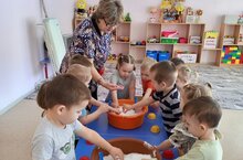 В 1 младшей группе прошла тематическая неделя «Профессии». В этом возрасте только закладываются первые знания о профессиях. Всю неделю малыши изучали профессии, которые нас кормят «Повар», «Садовод», " Фермер" «Продавец». Рассматривали сюжетные картинки, беседовали о профессиях родителей. После увлекательных бесед, дети с удовольствием играли в сюжетно-ролевые игры "Магазин", "Кафе". Побывали в роли садовода и посадили лук, укроп, которые затем можно будет использовать в суп, укрепляя витаминами свой иммунитет. Познакомились с тестом , попробовали его замесить и сделать пирожки, крендельки. Малышам очень понравилось чувствовать себя большими и выполнять разную работу. Каждая профессия интересная и по своему хороша.