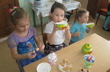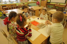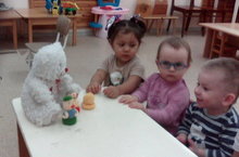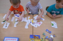 1 яштән алып 3 яшькә хәтле балалар кечкенә предметлар белән уйнарга бик яраталар. 1 кече “В” төркеме тәрбиячесе Наталия Гаврилова сабыйларга “Мозаика”, “Парын тап” кебек уеннар белән ничек итеп уйнарга кирәк икәнлеген күрсәтте. Уйнаган вакытта балаларның вак моторикасы камильләшә, предметларның исемнәрен үзләштерә, төсләрне һәм формаларны өйрәнә.
