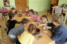 Дети старшей группы МБДОУ «Верхнеуслонский детский сад «Березка» с воспитателем и педагогом МБОУ ДОД «Верхнеуслонский муниципальный район «Станции юных туристов» Людмилой Тимиряевой на занятии кружка «Юный эколог», закрепили знания о свойствах песка: сырой – можно лепить, сухой, сыпучий, песчинки разлетаются, лепить нельзя и т.д.