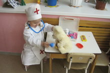 Балаларның психик үсешенә рольле-сюжетлы уеннар зур йогынты ясый: аларның тасвирлы фикерләү сәләте үсә башлый. 1 кече «А" төркем балалары «Айболит» уенын рәхәтләнеп уйныйлар.