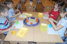 Уртанчы төркем балалары тәрбиячеләре Ольга Гусева һәм Раиса Боброва белән бергә үз куллары белән папье–маше техникасында савыт-саба ясадылар. -